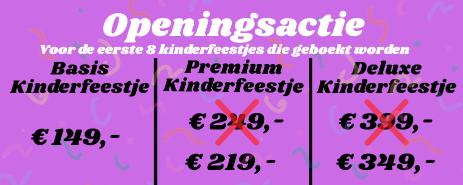 Bij alle kinderfeestjes zit inbegrepen: